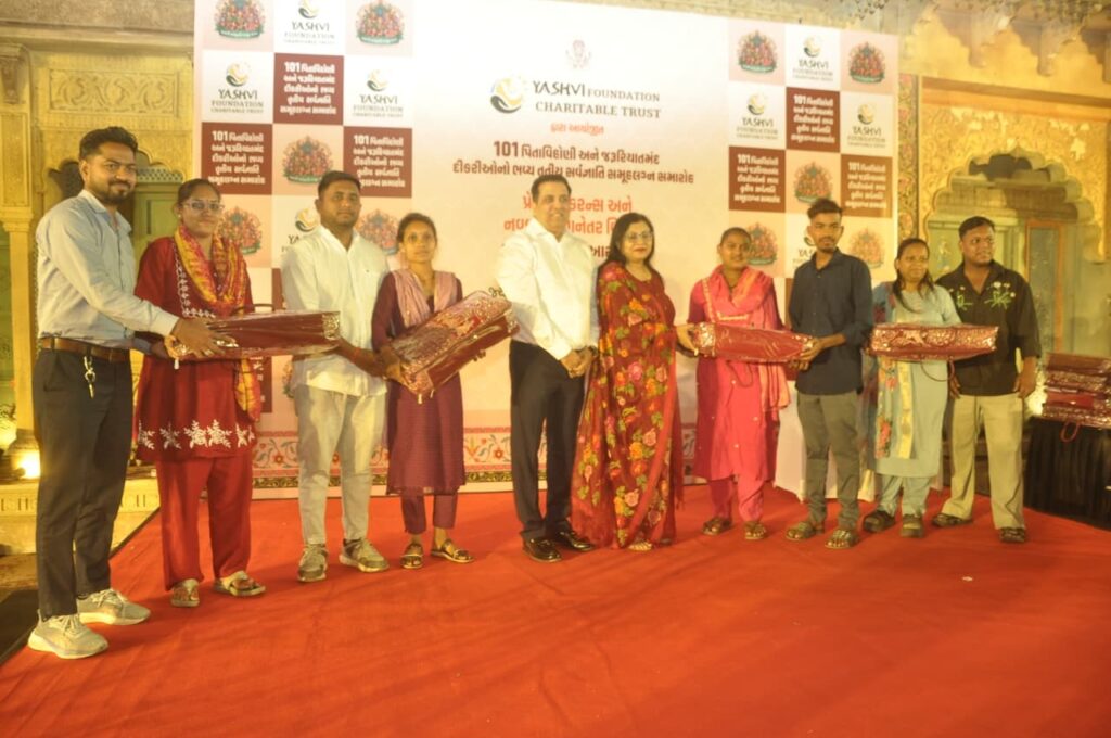 સુરત : સમાજમાં સકારાત્મકતાનું વાતાવરણ ઉભું કરવા વિવિધ સેવાયજ્ઞો થકી યશવી ફાઉન્ડેશન ચેરીટેબલ ટ્રસ્ટ કાર્યરત છે. જેના ભાગરૂપે સતત બે વર્ષથી યશવી ફાઉન્ડેશન પિતાવિહોણી અને જરૂરિયાતમંદ દીકરીઓના સમૂહલગ્નનું આયોજન કરતું આવ્યું છે. અને આ વર્ષે પણ આ જ સત્કાર્યને આગળ ધપાવતા તારીખ 14 માર્ચ, 2026ના રોજ તૃતીય સર્વજ્ઞાતિ સમૂહલગ્ન માટે યશવી પરિવાર ખુબ જ ઉત્સાહિત છે.