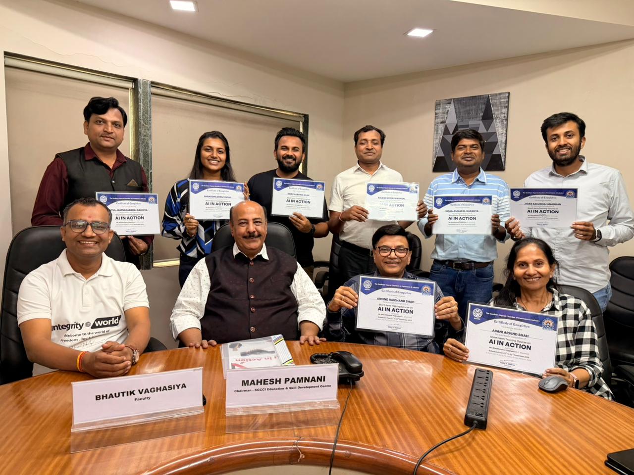 આ બધું જ શીખવવામાં આવ્યું એક જ વર્કશોપમાં – “AI in Action – 8 Days Action Taking Workshop”માં, જેનું સફળ આયોજન ધી સધર્ન ગુજરાત ચેમ્બર ઓફ કોમર્સ એન્ડ ઇન્ડસ્ટ્રી (SGCCI) દ્વારા સમૃદ્ધિ બિલ્ડિંગ, નાનપુરા ખાતે કરવામાં આવ્યું હતું.