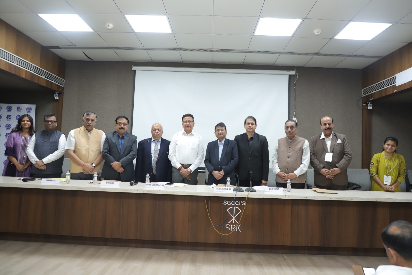 ઉન્મેશ દીક્ષિત (એક્ઝિક્યુટિવ ડિરેક્ટર, અમદાવાદ મેનેજમેન્ટ એસોસિએશન);  નિખિલ મદ્રાસી (પ્રેસિડેન્ટ, SGCCI) અને  નીતિન કે. ઓઝા (પ્રેસિડેન્ટ, સુરત મેનેજમેન્ટ એસોસિએશન અને મેનેજિંગ ડિરેક્ટર, સુરત પ્રેસ્ટેક પ્રાઈવેટ લિમિટેડ)એ સ્વાગત પ્રવચન આપ્યું હતું.