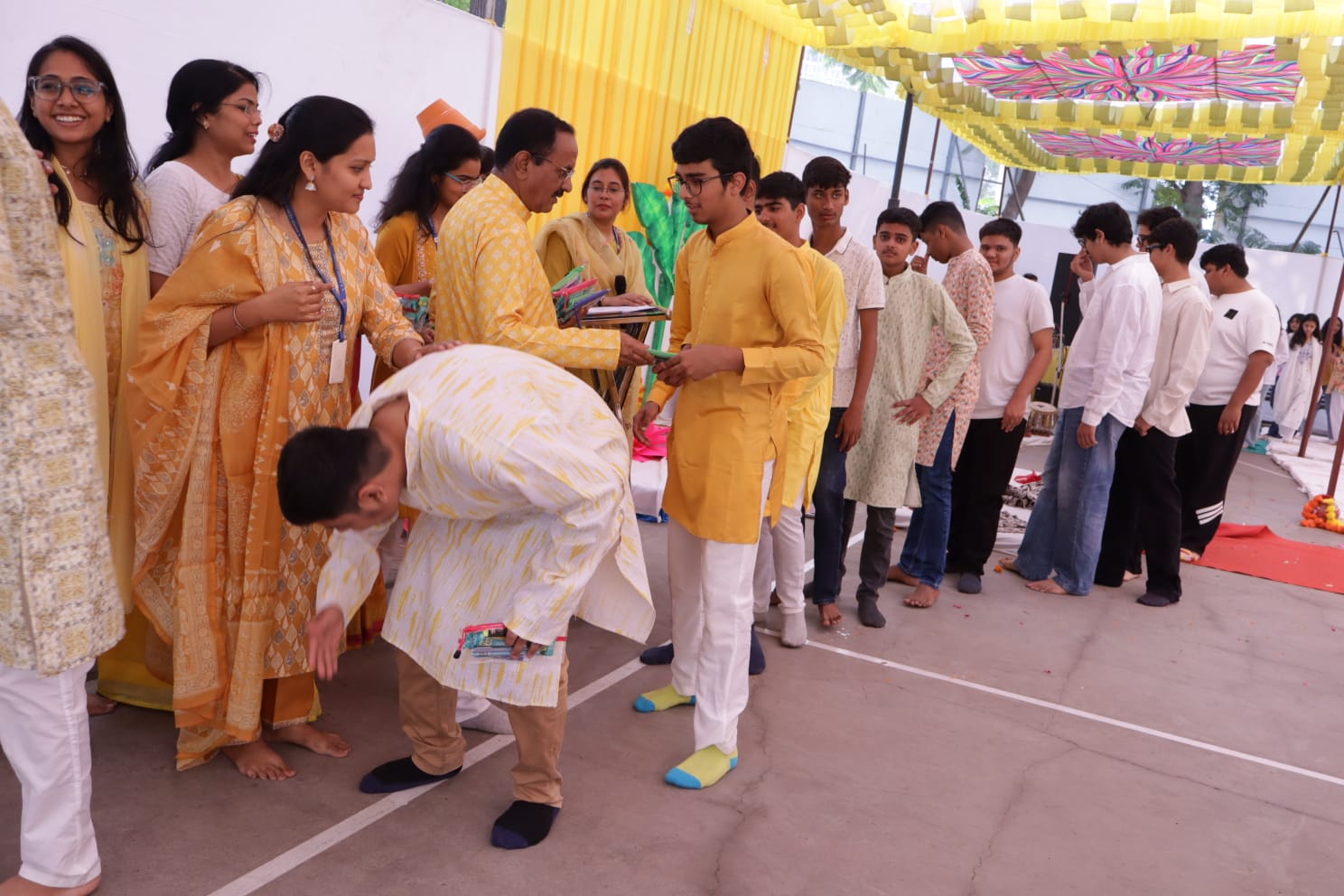 શાળાના પ્રિન્સિપાલ  મૌતોશી શર્માએ વિદ્યાર્થીઓને પોતાના હૃદયસ્પર્શી આશીર્વાદ આપીને વિશ્વાસ, એકાગ્રતા અને નિર્ભય આત્મવિશ્વાસ સાથે આગળ વધવા માટે પ્રેરણા આપી. આ અવસરે વિદ્યાર્થીઓએ પોતાના માતા-પિતા અને શિક્ષકોના ચરણસ્પર્શ કરીને આવનારી બોર્ડ પરીક્ષાઓ માટે તેમના આશીર્વાદ લીધા — જે આદર, કૃતજ્ઞતા અને સંસ્કારનું ઉત્તમ ઉદાહરણ બન્યું.
