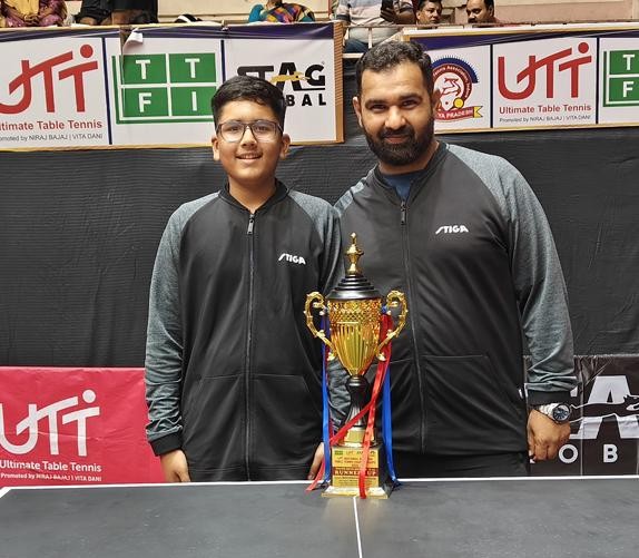 ગાંધીધામ : ટેબલ ટેનિસ ફેડરેશન ઓફ ઇન્ડિયા (ટીટીએફઆઈ)ના નેજા હેઠળ મધ્ય પ્રદેશ ટેબલ ટેનિસ એસોસયિયેશનના ઉપક્રમે ઇન્દોરના અભય પ્રસાદ ઇન્ડોર સ્ટેડિયમ ખાતે ચાલી રહેલી યુટીટી ત્રીજી નેશનલ રેન્કિંગ ટેબલ ટેનિસ ચેમ્પિયનશિપ 2025માં ગુજરાતના ઉભરતા ખેલાડી દેવ ભટ્ટે રાજ્યને ગૌરવ અપાવતાં બોયઝ અંડર-13 કેટેગરીમાં સિલ્વર મેડલ જીત્યો હતો. આ ટુર્નામેન્ટ 28 ઓક્ટોબર થી ચોથી નવેમ્બર દરમિયાન યોજાઈ છે.