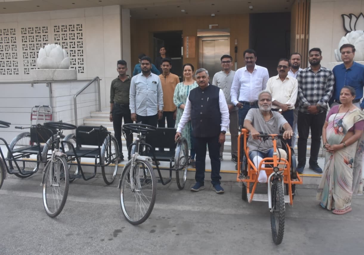 પુર્વ નગરસેવક અને પેસેન્જર એમેનિટી કમિટીના સભ્ય છોટુભાઈ પાટિલના હસ્તે નવી સિવિલના જરૂરિયાતમંદ દર્દીઓને ત્રણ ટ્રાયસિકલો અર્પણ