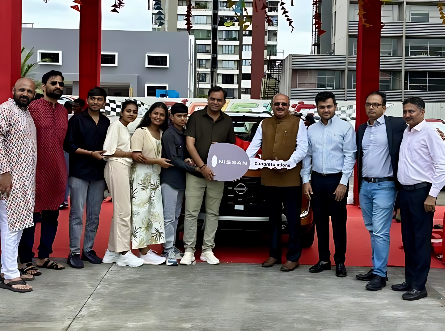 સુરત : 3 ઓક્ટોબર, 2025 : નિસાન મોટર ઇન્ડિયાએ, પ્રમુખ નિસાન સાથે મળીને, સુરતમાં એક જ દિવસમાં ગ્રાહકોને 50 નવી નિસાન મેગ્નાઈટ SUV સોંપીને દશેરાના તહેવારની ભવ્ય ઉજવણી કરી હતી. આ ઈવેન્ટ સાથે, કંપનીએ આ પ્રદેશમાં ગ્રાહકને શ્રેષ્ઠ અનુભવ પ્રદાન કરવાની તેની પ્રતિબદ્ધતા વ્યક્ત કરી છે. આ કાર્યક્રમ સુરતના વેસુ સ્થિત ડ્રિફ્ટ ટર્ફ ખાતે યોજાયો હતો, જ્યાં ગ્રાહકોને તેમની નવી SUV સોંપવાની સાથે જ ઉત્સવના વાતાવરણમાં તેમનું સ્વાગત કરવામાં આવ્યું હતું. આ સમારંભ સાથે, પ્રમુખ નિસાને એક સરળ અને યાદગાર ડિલિવરી અનુભવ સુનિશ્ચિત કર્યો હતો, જે ગ્રાહક સંતોષ અને સમુદાયિક જોડાણ પ્રત્યે ડીલરશીપનું સમર્પણ દર્શાવે છે. આ ડિલિવરી નિસાન મોટર ઇન્ડિયાના સેલ્સ ડિરેક્ટર વિવેક પાલીવાલ અને પ્રદ્યુમનસિંહ આર. જાડેજા, અધ્યક્ષ, પ્રમુખ નિસાન ની હાજરીમાં કરવામાં આવી હતી.