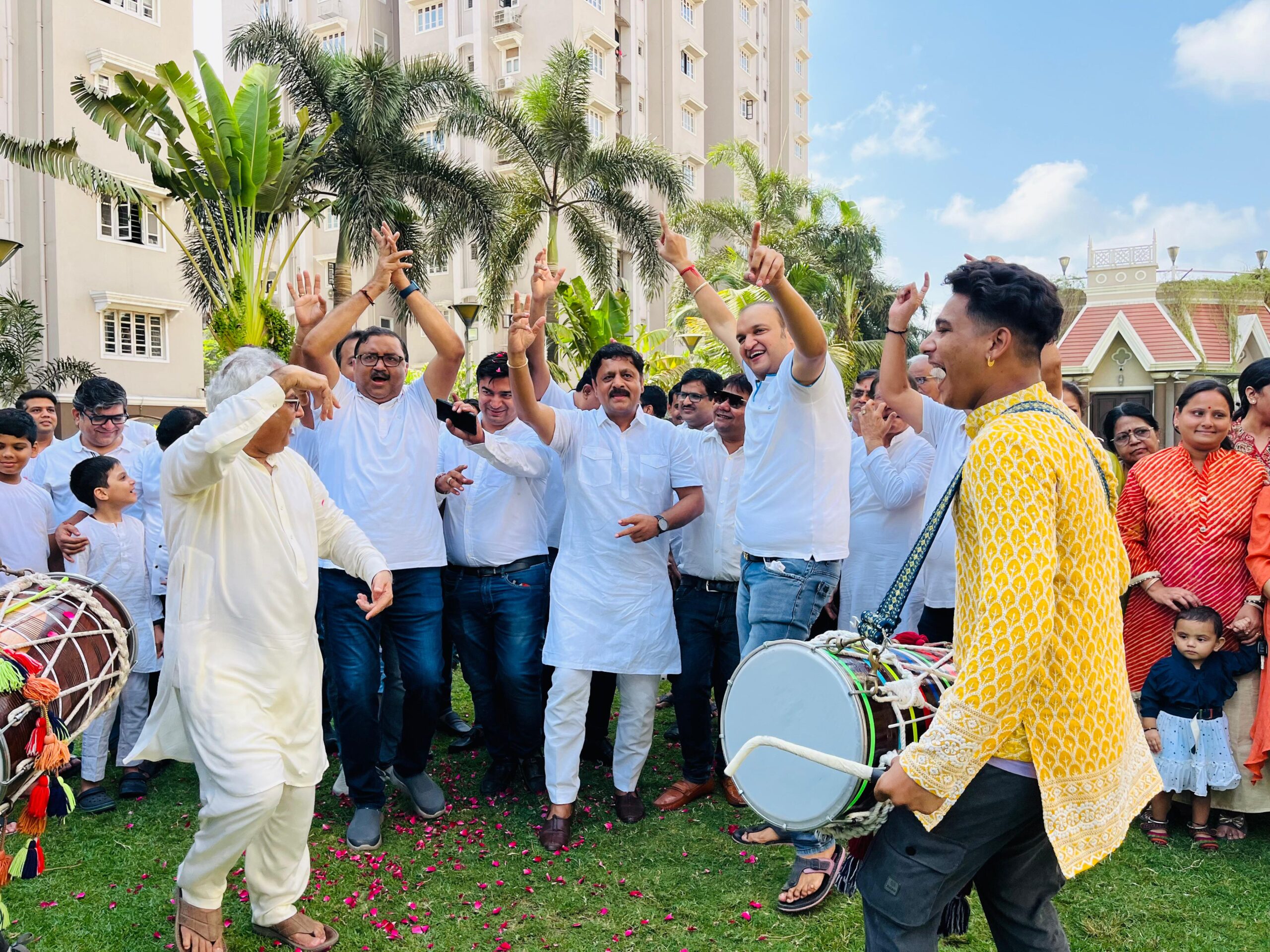 સૂર્યપ્રકાશ રેસીડેન્સીના રહેવાસીઓએ સફેદ ડ્રેસ કોડમાં ઢોલના તાલે લોકશાહીના પર્વની ઉજવણી કરી