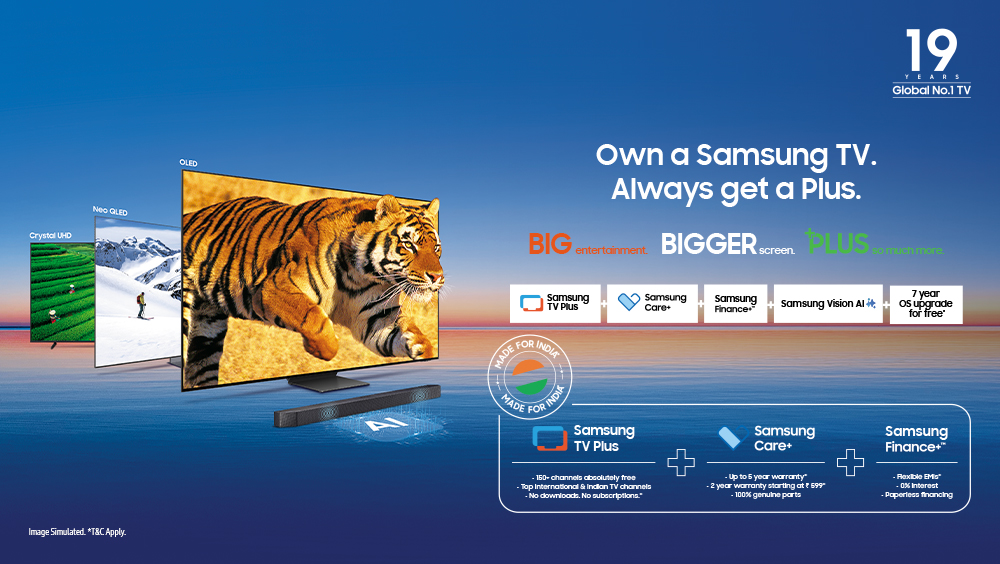 સેમસંગ દ્વારા વિઝન AI ટીવી માટે પ્લસ કેમ્પેઈન લોન્ચઃ હવે મેળવો મોટું મનોરંજન, મોટાં સ્ક્રીન્સ અને વધુ