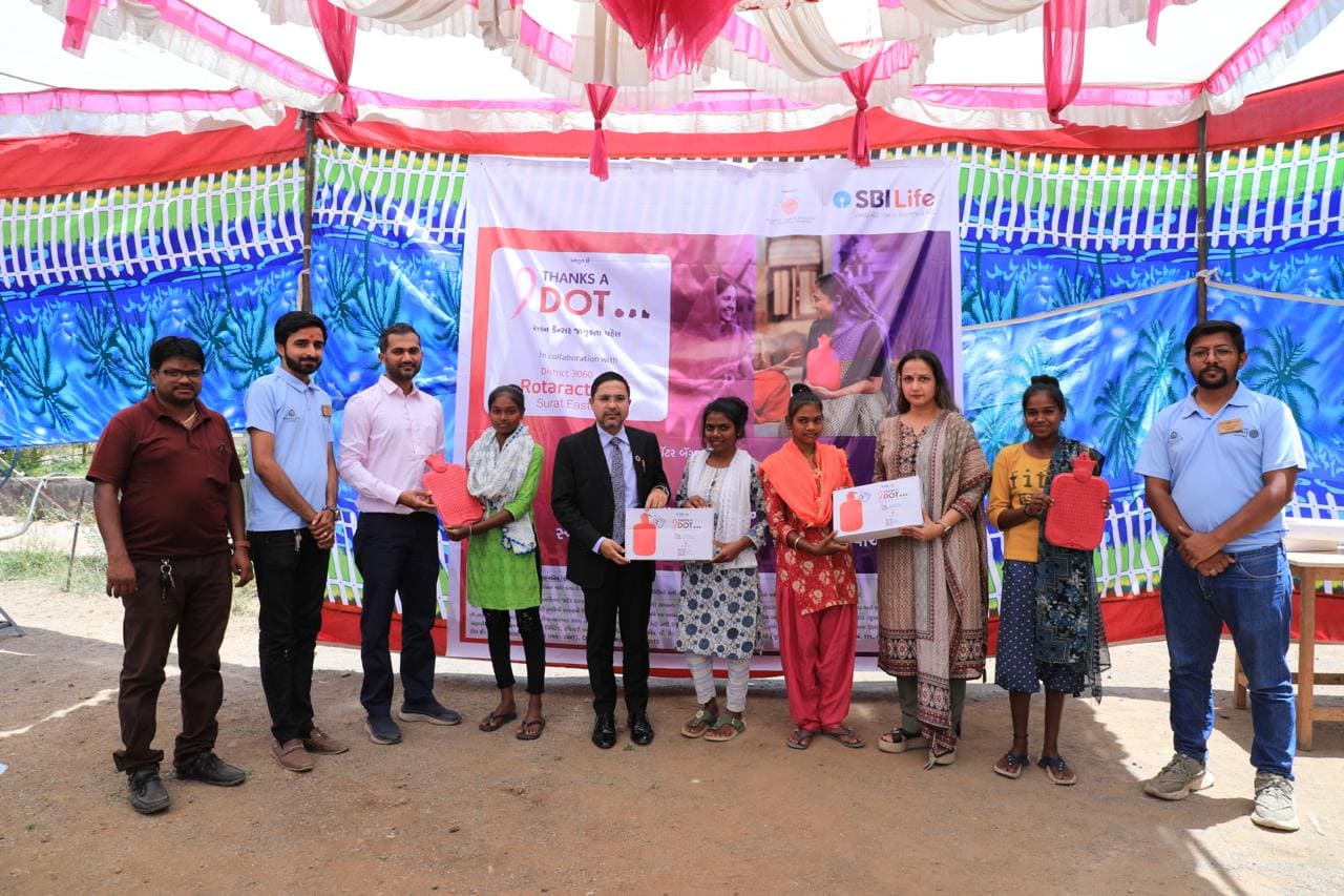એસબીઆઈ લાઇફ ઇન્શ્યોરન્સના રિજનલ ડિરેક્ટર-અમદાવાદ  અમિત કુમાર સાહાએ યુનિવર્સલ હોસ્પિટલના ઓન્કોલોજીસ્ટ મૃદાલ પટેલ અને રોટરેક્ટ ક્લબ ઓફ સુરત ઇસ્ટના સભ્યો સાથે ગ્રામીણ સમુદાયની મહિલાઓને સંબોધી હતી અને નવીનતમ થેન્કસ અ ડોટ’ હોટ વોટર બેગનું વિતરણ કર્યું હતું.