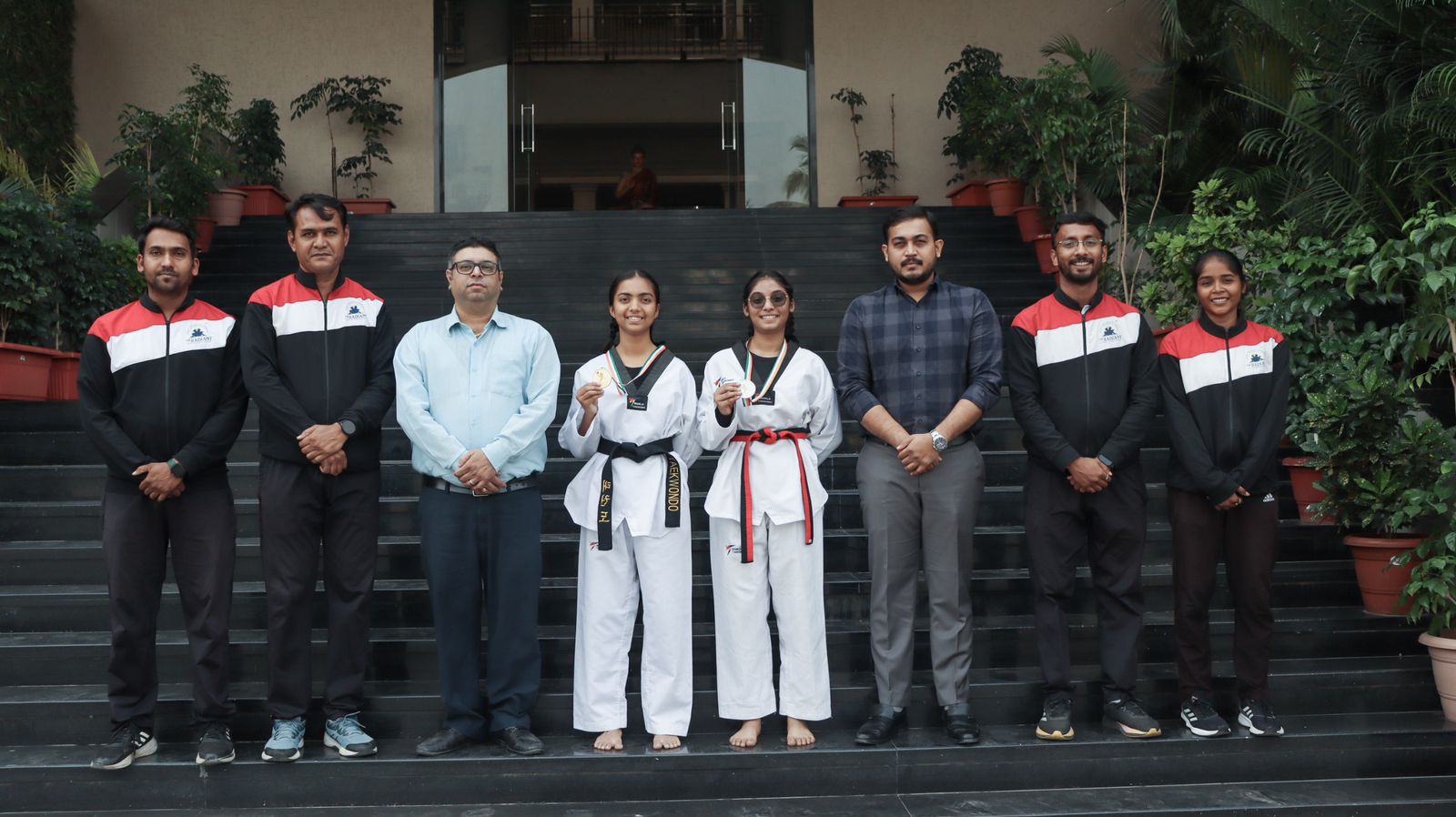 સુરત. ધ રેડિયન્ટ ઇન્ટરનેશનલ સ્કૂલ (GSEB અંગ્રેજી માધ્યમ) ના વિદ્યાર્થીઓએ વ્યારા સ્પોર્ટ્સ કોમ્પ્લેક્સ ખાતે આયોજિત ખેલ મહાકુંભ રાજ્ય-સ્તરીય તાઈકવૉન્ડો સ્પર્ધામાં અંડર-17 ગર્લ્સ કેટેગરીમાં  સારું પ્રદર્શન કરીને શાળાનું નામ રોશન કર્યું. યશ્વી કાવાએ ગોલ્ડ મેડલ (-44 કિગ્રા) અને જિયા કાવાએ સિલ્વર મેડલ (-52 કિગ્રા) જીત્યો. આ સિદ્ધિ સમગ્ર શાળા પરિવાર માટે ગર્વની વાત છે અને શાળાની મજબૂત રમત સંસ્કૃતિને પ્રતિબિંબિત કરે છે. શાળા મેનેજમેન્ટ, કેમ્પસ ડિરેક્ટર આશિષ વાઘાણી, પ્રિન્સિપાલ મેલ્કમ સાયરસ પાલિયા અને તાઈકવૉન્ડો કોચ ભૂપેન્દ્ર ચૌહાણને અભિનંદન પાઠવવામાં આવ્યા હતા.